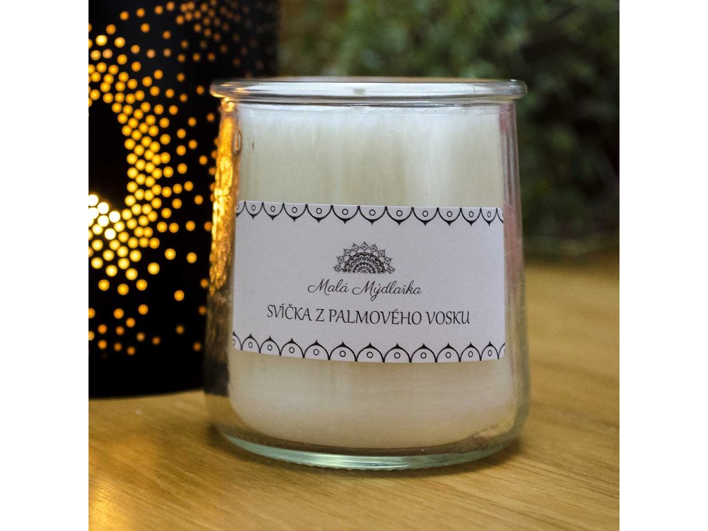 Svíčka z palmového vosku, který vytváří nádhernou krystalickou strukturu bez přidaných vůní pro váš zdravý domov a příjemnou atmosféru.